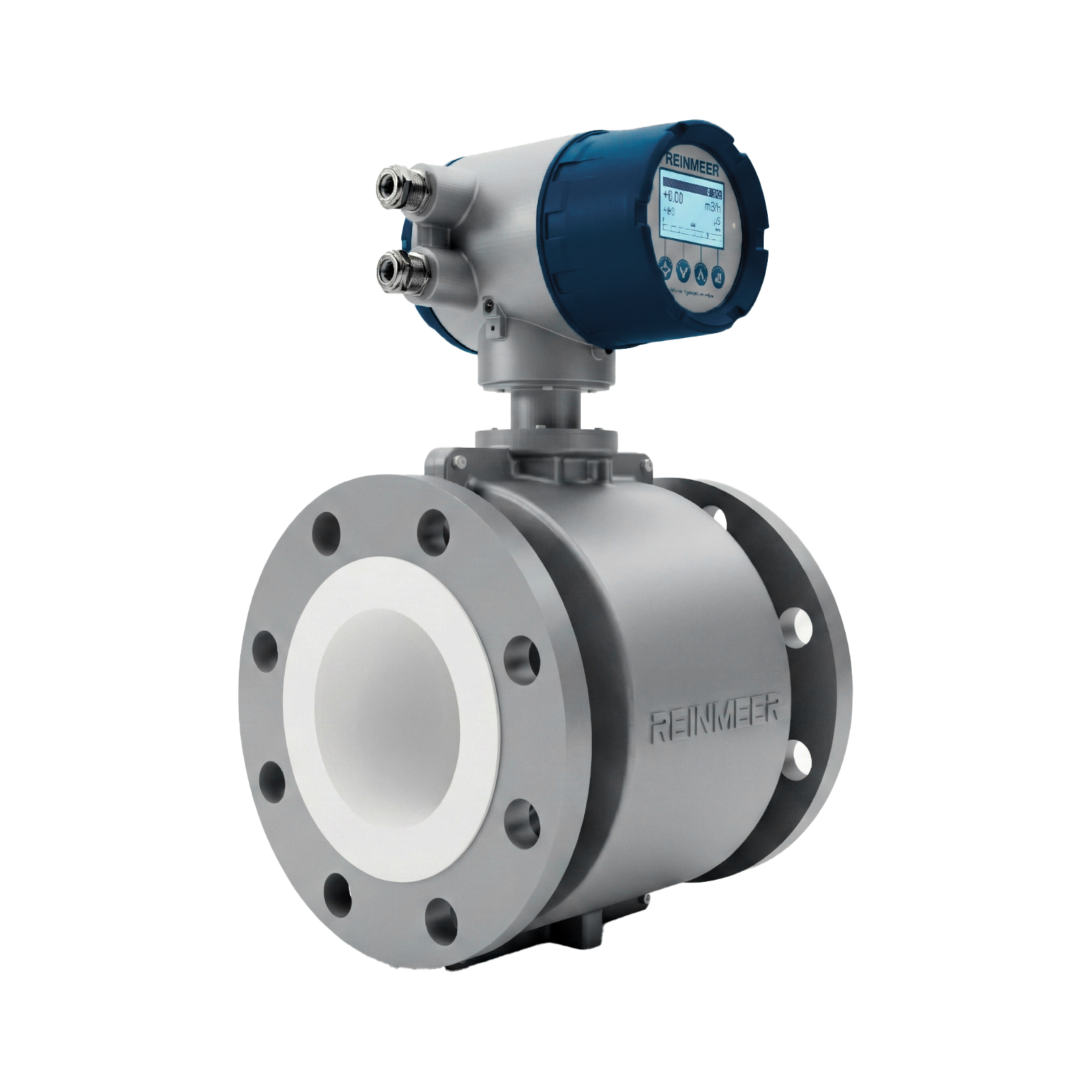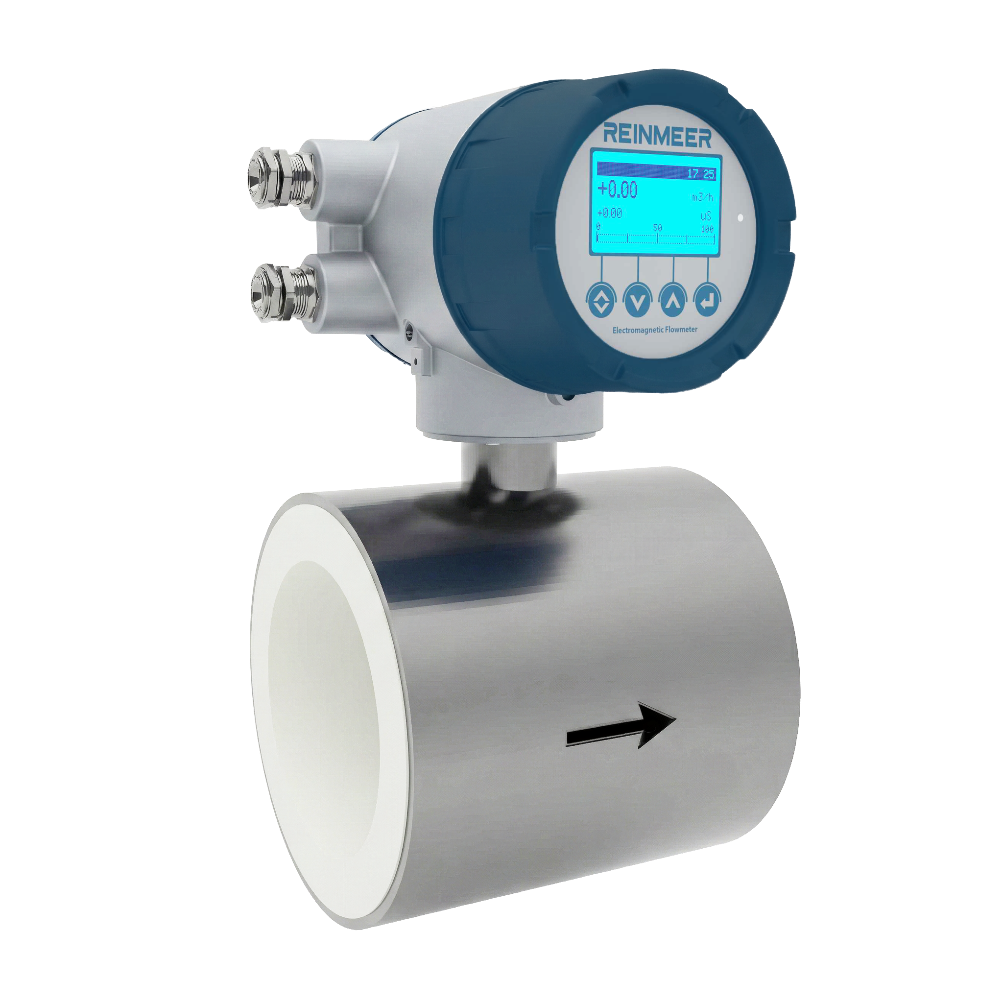 Electromagnetic flowmeters operate according to Faraday’s law of electromagnetic induction and are ideal for conductive liquids. They contain no moving parts, create no pressure loss, and offer long service life.