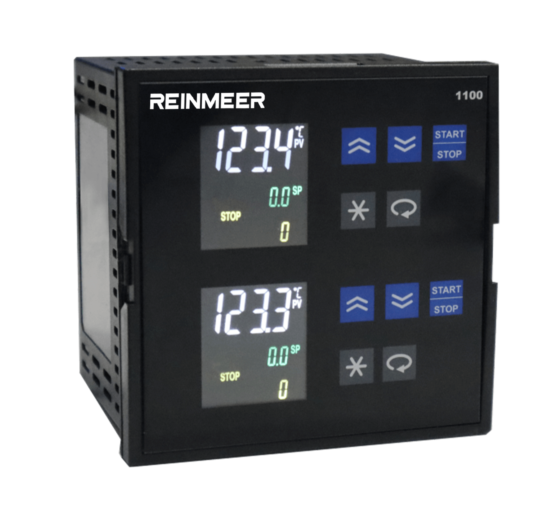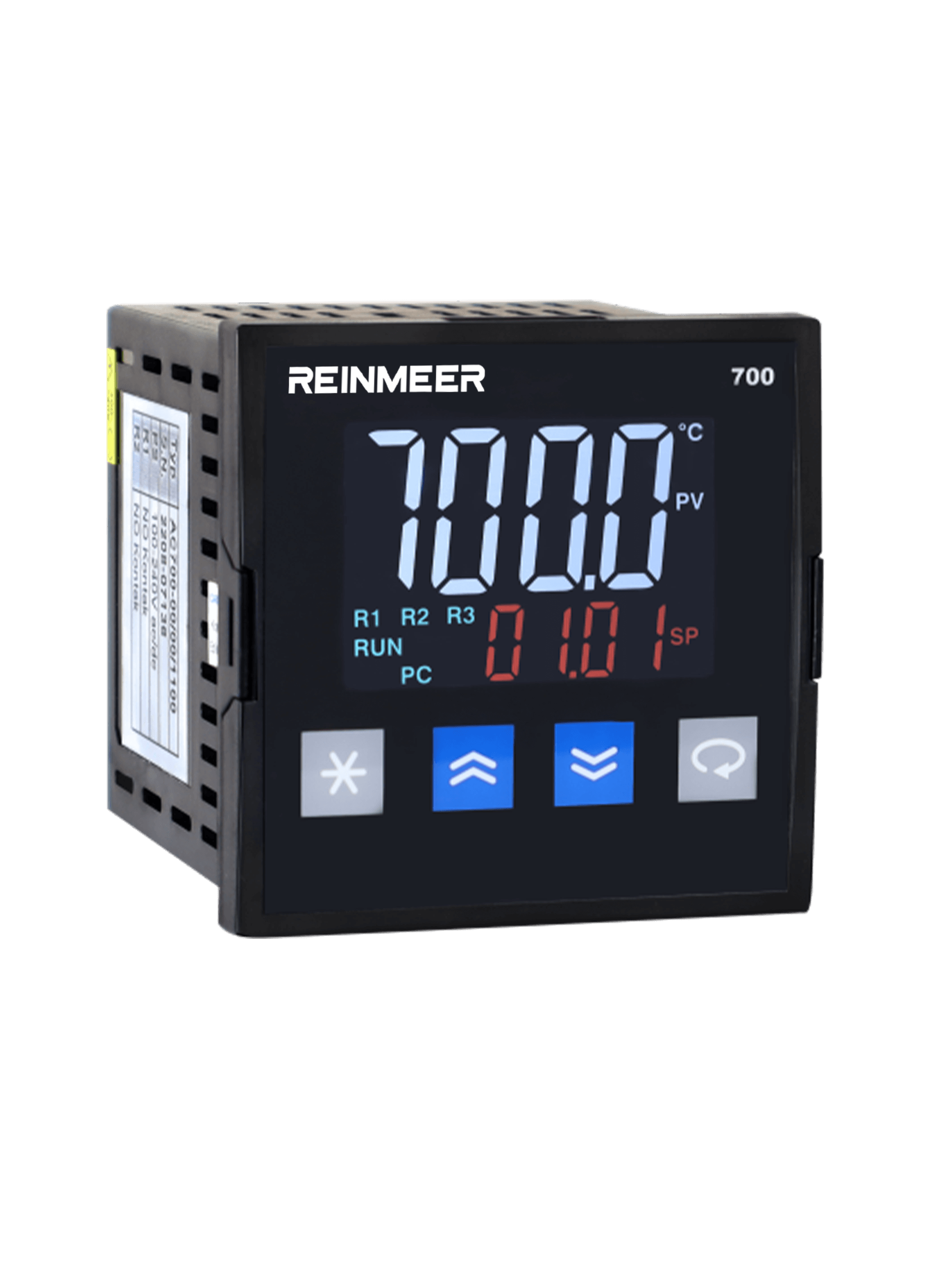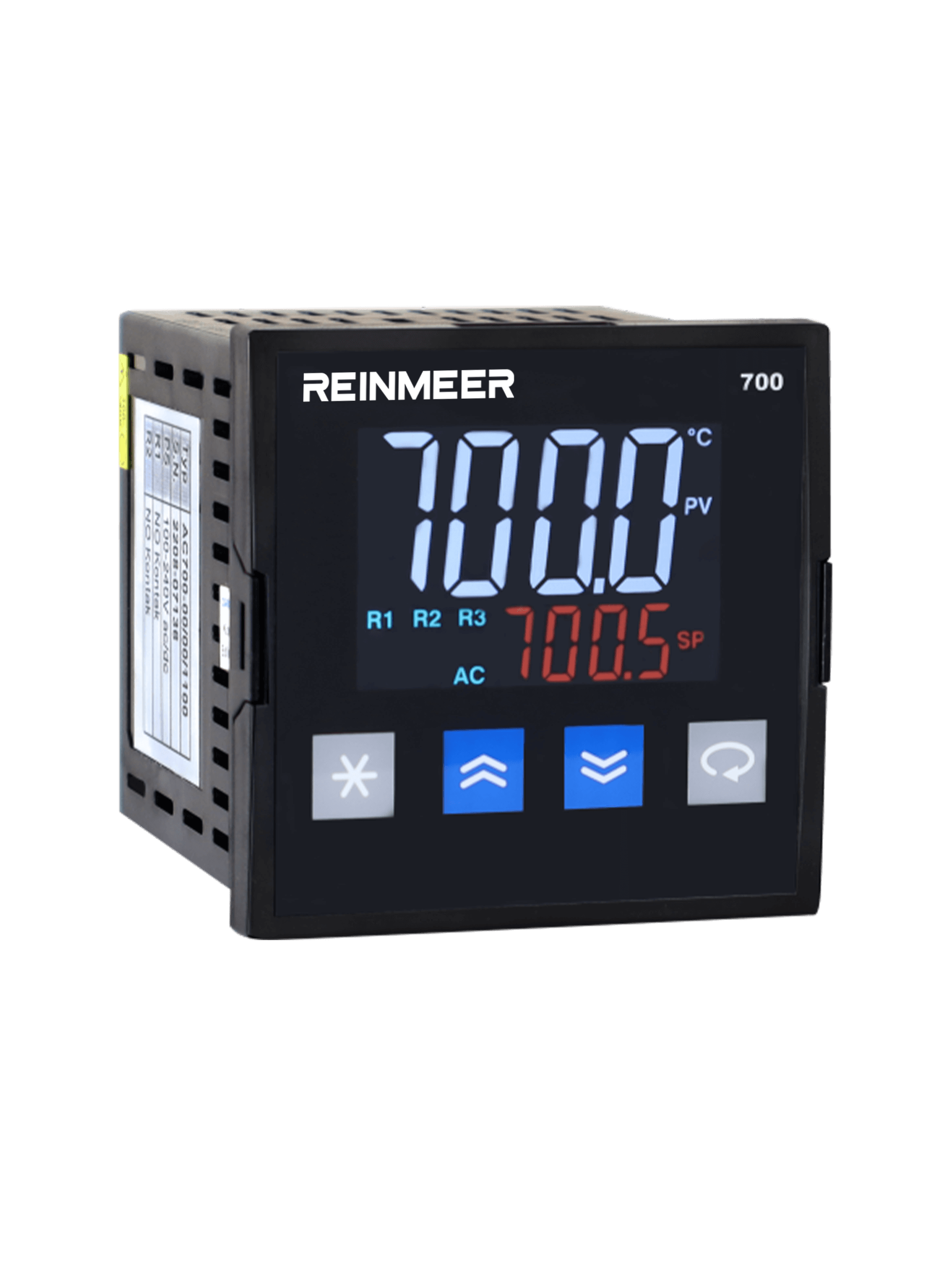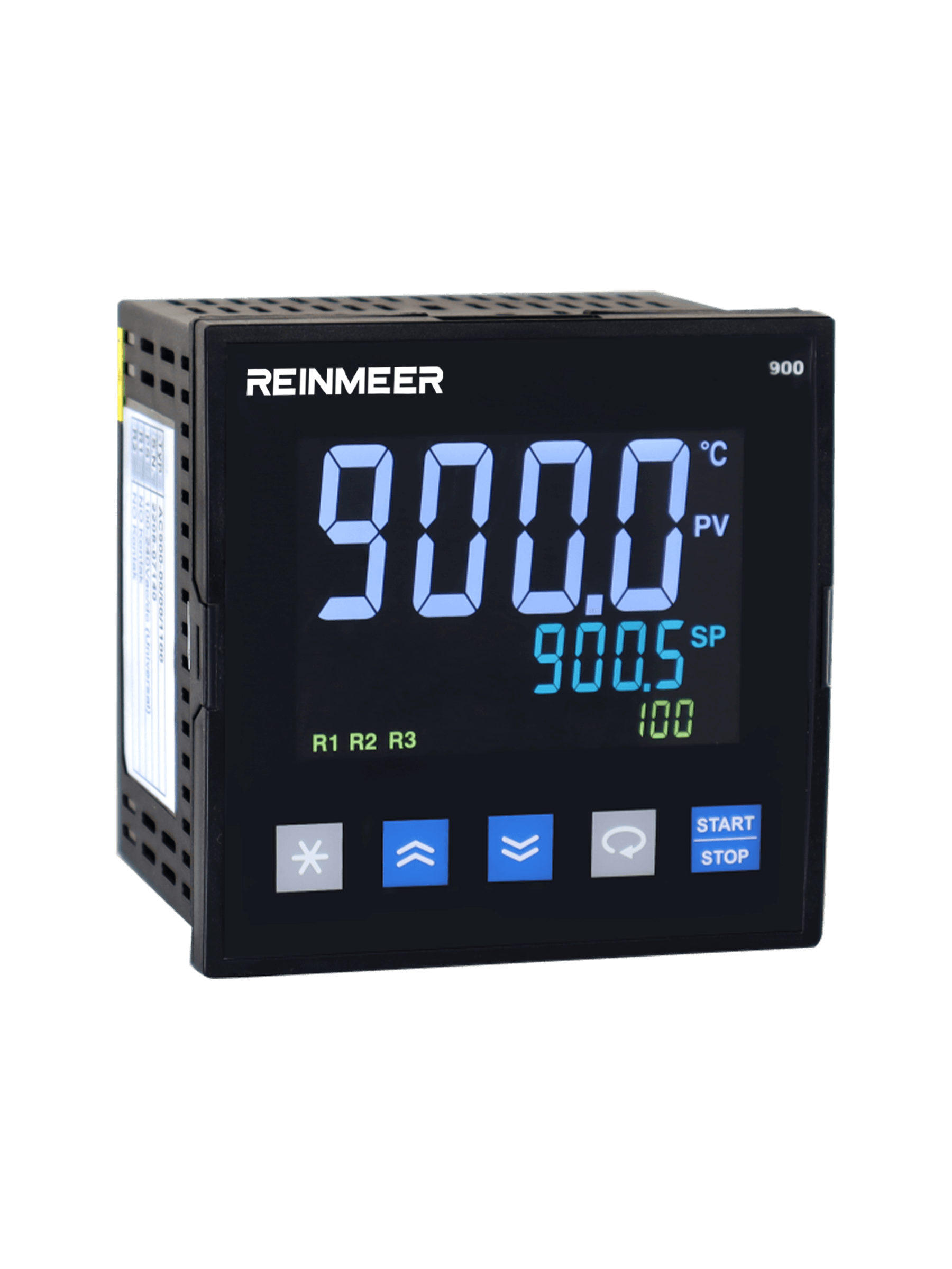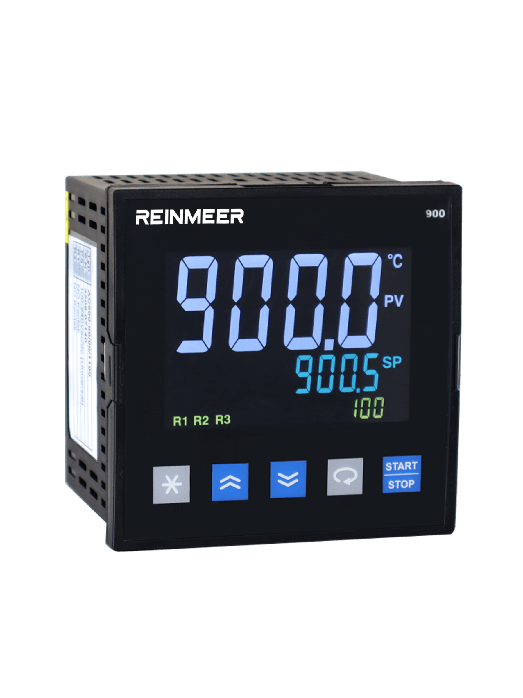 The REINMEER RM-PC500 is an advanced, 48x96 mm industrial step controller designed to measure and control various process variables such as temperature, pressure, and humidity. This fully modular instrument features extensive programming capabilities, supporting 100 programs with a total of 800 steps, alongside versatile control types including ON/OFF and PID. Powered by a universal 100-240V AC/DC or 24V supply, it is widely utilized across multiple industrial sectors, including food, plastics, metallurgy, and ceramics.